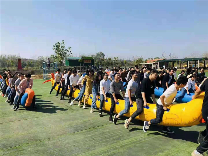 拓展类的活动有,旱地龙舟,蚂蚁搬家,滚滚向前,击鼓颠球,挑战160s,龟兔赛跑,大脚板等,这么多的活动没人带着也不会觉得有意思,这里我们会看到每个团队都有一个教练带着大家在场地上活动现场氛围,大家也会非常的投入,你的团队也会更加团结向上。