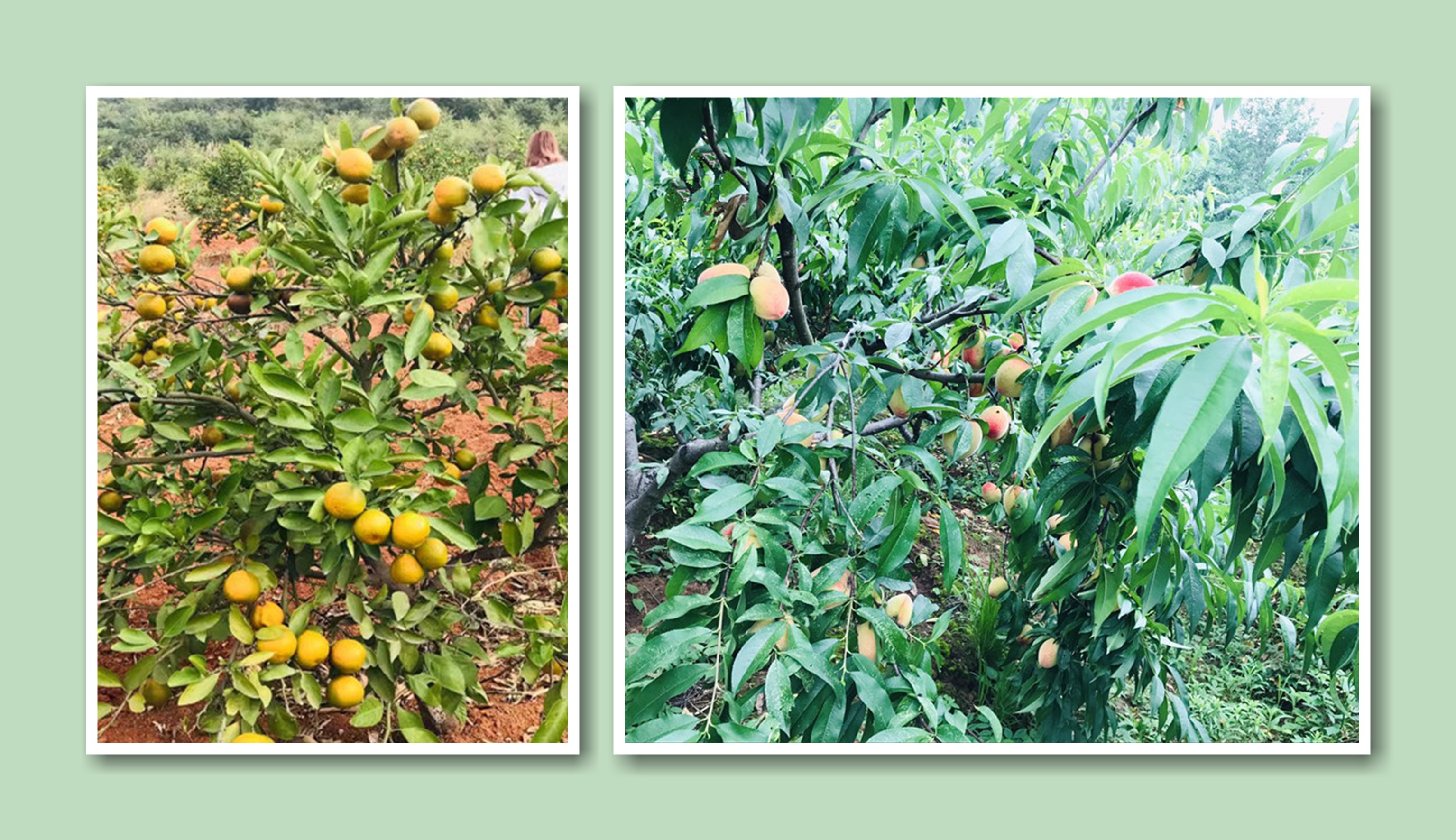 抵达园区,楼台亭阁交辉呼应,碧绿的青山耸立在庄园中十分的宏伟壮观,检票入园走进园中,百亩的水果林,整齐的扎根在土壤中,有桃树,李子树,麻梨树,枇杷树,猕猴桃树,小金桔和橘子树不同的季节,可以采摘不同的水果,可谓让周边的游客近水楼台先得月,大饱口福啦。