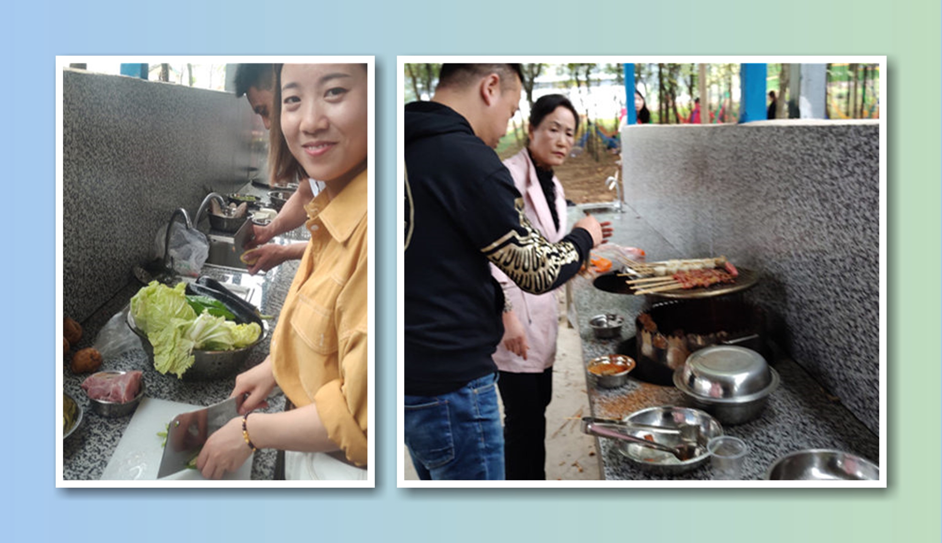 中午醉有趣的就是野炊这种土锅土灶造饭的环节啦,人多一起又热闹,大家成立一个炊事班,进行角色的分工,有的工友在抓鸡,有的在捉鱼,有的捡柴,有的生火,切菜,打杂。每个人都有自己的任务,不会出现2-3人在做饭,其他人在玩的现象,饭做好了大家可以先不用着急吃,可以组织厨艺比赛,设立相应的奖项,按照菜品的味道,卖相,起名,团队配合,分别进行评分。