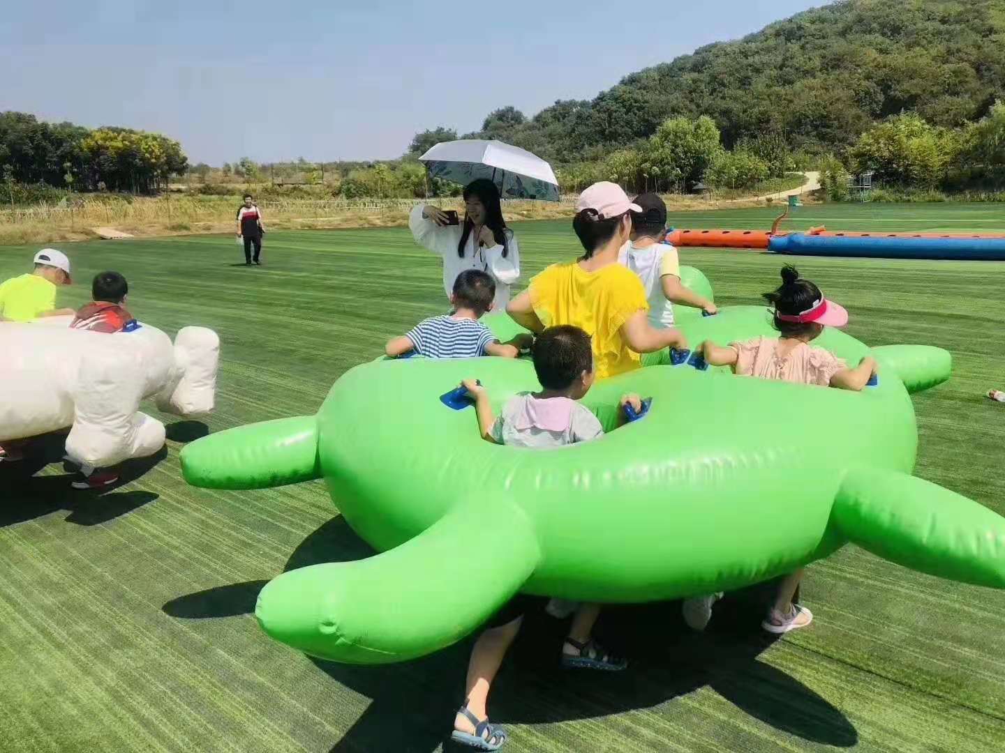 还有好玩的龟兔赛跑,大白兔和绿王八的活动道具已经摆放在挑战区类,小组提前分好组后,统一战线,扮成乌龟和小白兔,从起点来回折返,看谁是醉快的 那一个,轻松有趣而又搞笑的活动让孩子们十分的放松,释放童真无邪的美好,也让孩子们懂得了互助互爱,团结,配合,沟通的重要性,让孩子们学有所悟,学有所行。