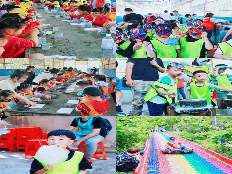 跟随教练的脚步来到农庄就开始上午的游园活动,穿越百亩果园,手先接触到的就是彩虹滑道这个活动项目,三条彩虹滑道,孩子们都可以体验的到,坐在滑滑垫上迎风而下,感觉真的非一般。