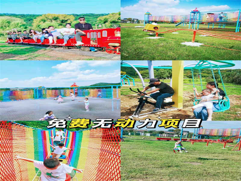 还有新增的无动力项目:轨道小火车,mini过山车,回旋溜索,地面滑索,丛林穿越,空中魔网等免费畅玩!