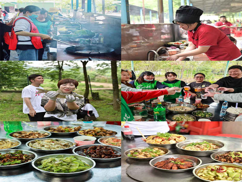 到了中午可以选择园区的野炊土锅做饭,园区提供食材吗,调料,厨具,大家可以自己动手去做,大家角色分工,各司其职,每个人都有事可干,其乐融融,画面非常温馨。